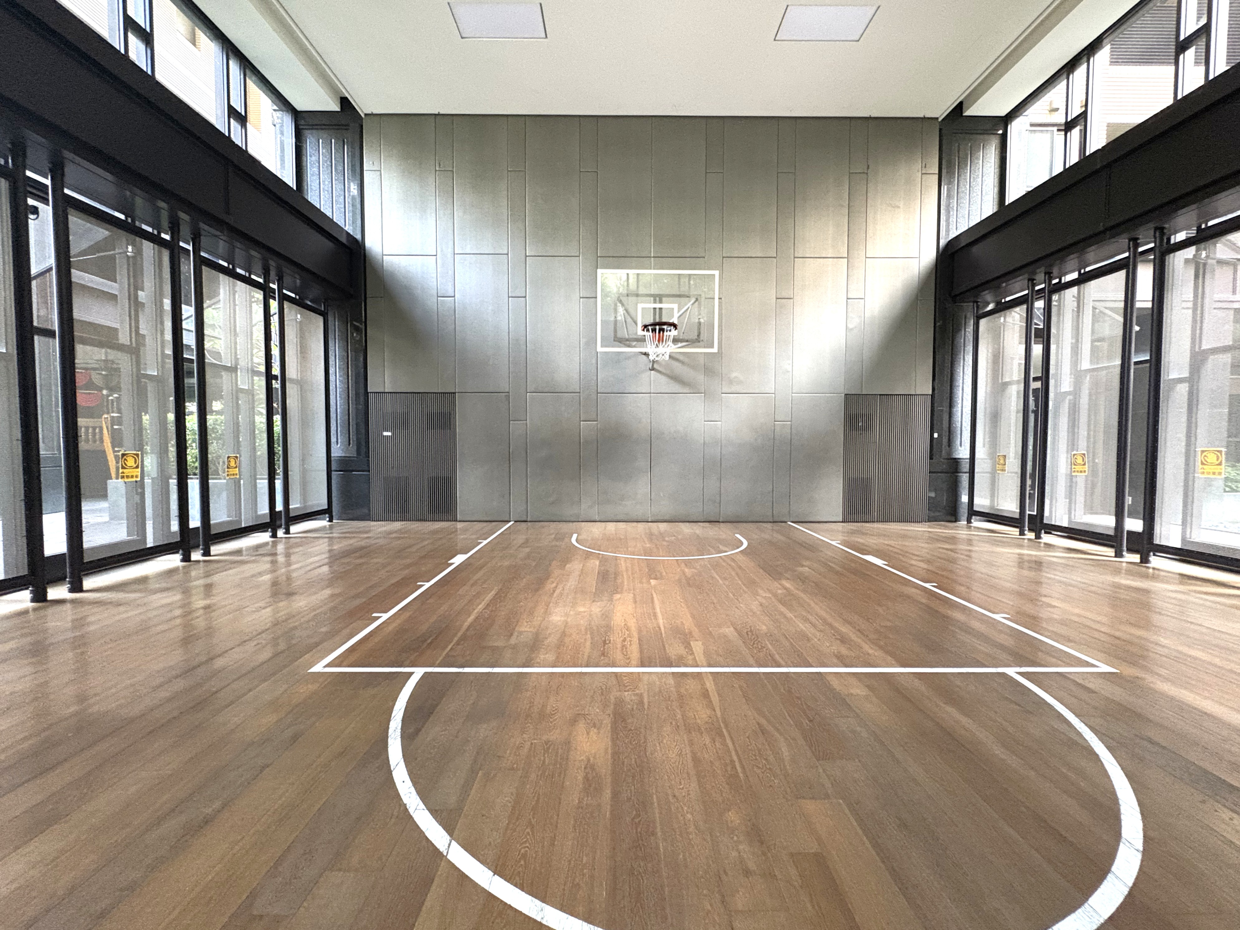 公共設施:泳池、烤箱、蒸氣室、挑高宴會廳與料理教室、閱覽室、交誼廳、「室內籃球場」、兒童遊樂區、健身房附韻律角落、影音中心、大小KTV。雨天不出門也能在社區透氣,舒適的生活不分四季。